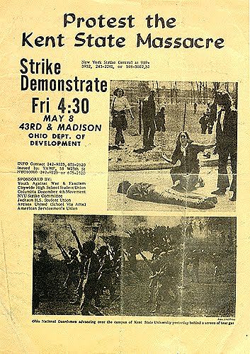 Poster from New York University, calling for a demonstration to protest the "Kent State Massacre".