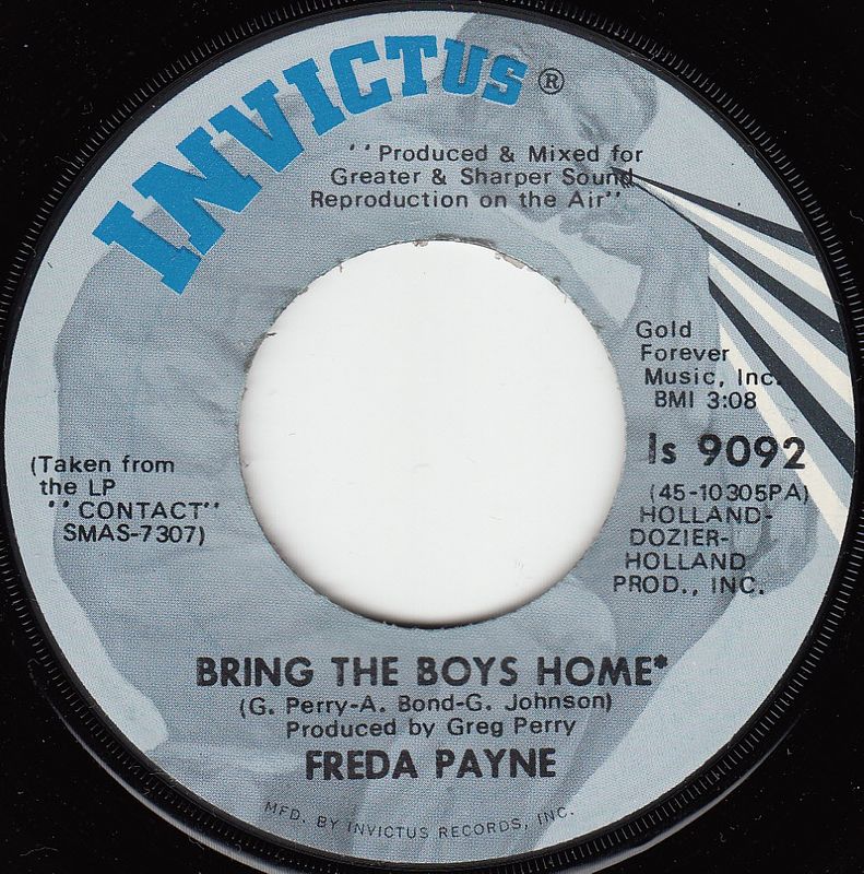 Fred Payne, "Bring the Boys Home" (1971), called for an end to the war. It reached # 3 on the Billboard R&B charts